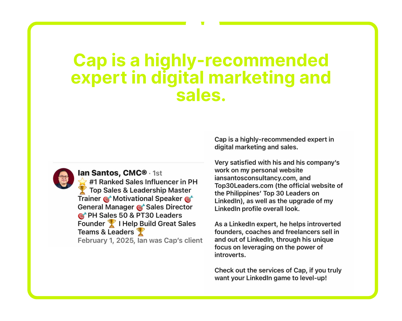 Cap Hernandez is a creative entrepreneur, sales captain, and community builder with over 20 years of sales experience across multiple industries including FMCG, IT, software, and digital marketing. As someone who built his sales career as an introvert, Cap now helps founders, freelancers, and professionals apply practical systems for client acquisition, personal branding, and business growth—especially those who feel selling is not their natural strength.