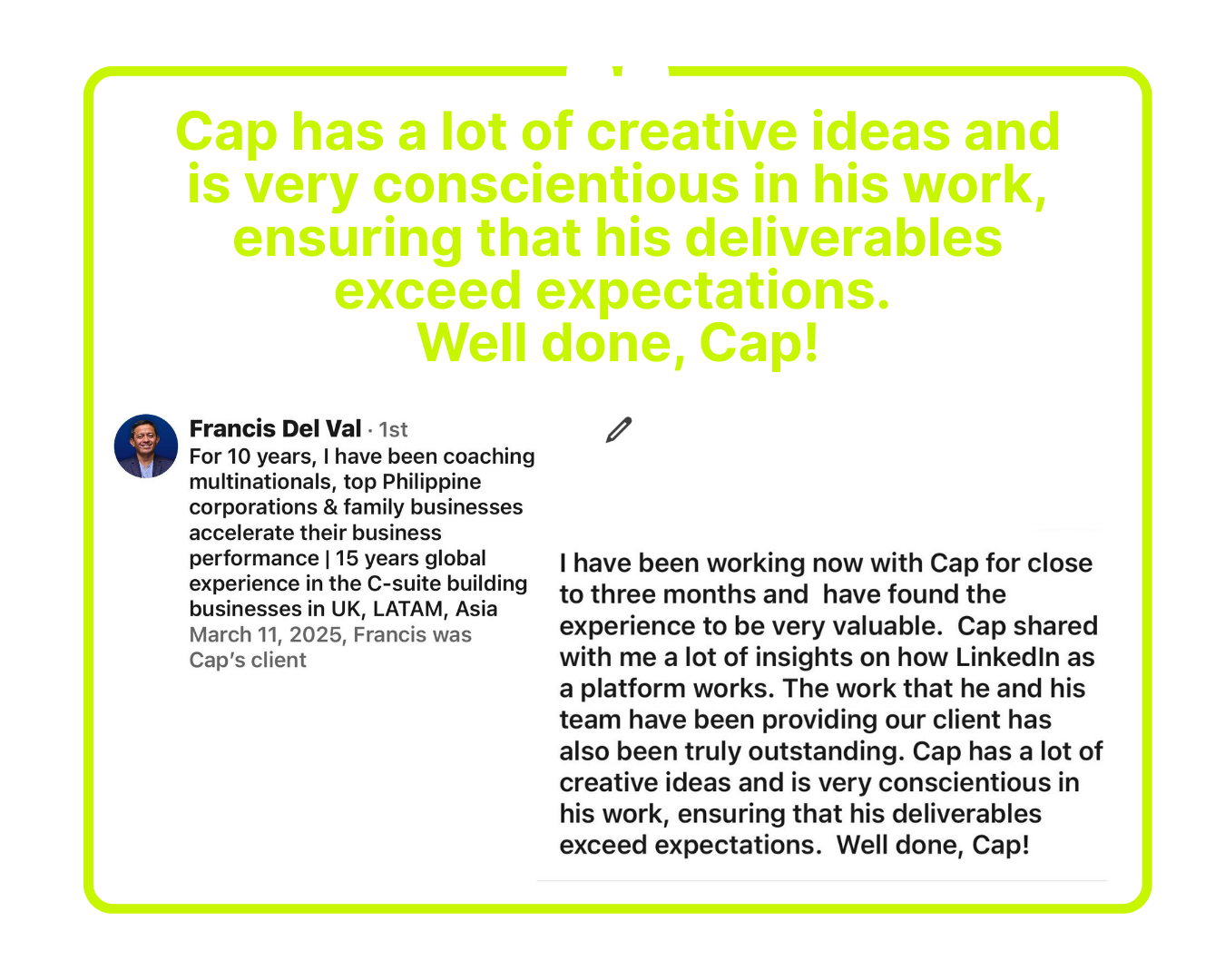 We help businesses and founders scale through LinkedIn management, personal branding, and sales systems.